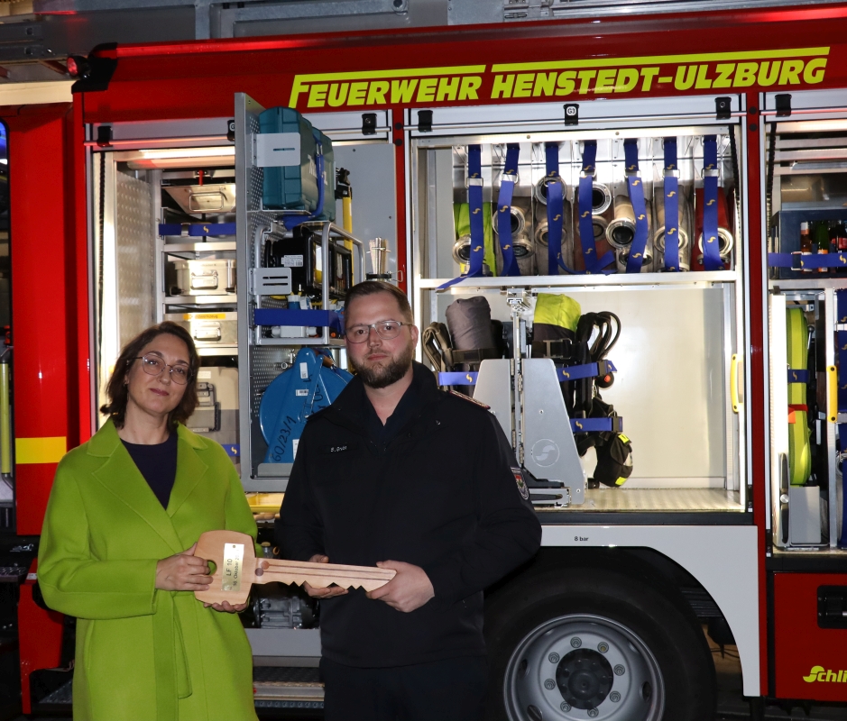 „Ein Dank geht an die Arbeitsgruppe unter der Leitung von Sören Suhr, dem stellvertretenden Henstedter Ortswehrführer, und Bürgermeisterin Ulrike Schmidt mit großem Engagement aus der Verwaltung – federführend war wie immer ‚Melli‘, also Melanie Hamann, dabei. Der Arbeitsgruppe ist es zu verdanken, dass wir wieder ein für unsere Anforderung zugeschnittenes Fahrzeug bekommen haben, welches wir auch genauso haben wollten.“