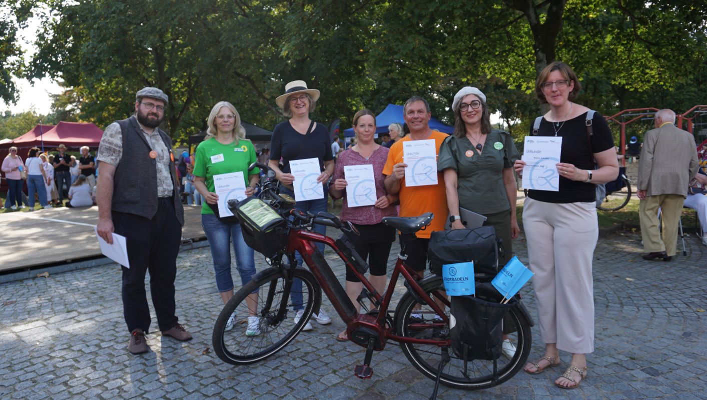 Zu den Programmpunkten des Gemeindefests gehörten auch zwei Siegerehrungen. So fand die Preisübergabe im Rahmen der diesjährigen „Stadtradeln“-Aktion statt, bei der sich alle Team-Kapitäne stellvertretende für alle Teilnehmenden Urkunden abholen konnten. Zudem wurden die von „Henstedt-Ulzburg Marketing“ gesponserten Gewinne überreicht. Ausgeteilt wurden diese von Ulrike Schmidt sowie Jens Daberkow als Vorsitzendem der Henstedt-Ulzburger Ortsgruppe des Allgemeinen Deutschen Fahrrad-Clubs und Leif Mazomeit als Sachverständigem für Radverkehr der Gemeinde. Unter allen Mitradelnden wurden im Zufallsprinzip und unabhängig von den zurückgelegten Kilometern drei Preise verlost. Als Drittplatzierte holte sich Marina Schrader einen 25-Euro Gutschein für die „Buchhandlung Rahmer“ ab. Der Zweitplatzierte und Gewinner eines 75-Euro-Gutscheins für den Fahrradladen GEFU, Bernhard Gößler, konnte bei der Übergabe ebenso wenig dabei sein wie der Erstplatzierte und Gewinner eines 100-Euro-Gutschein für den Fahrradladen Zweirad-Heins, Sven Willhöft.