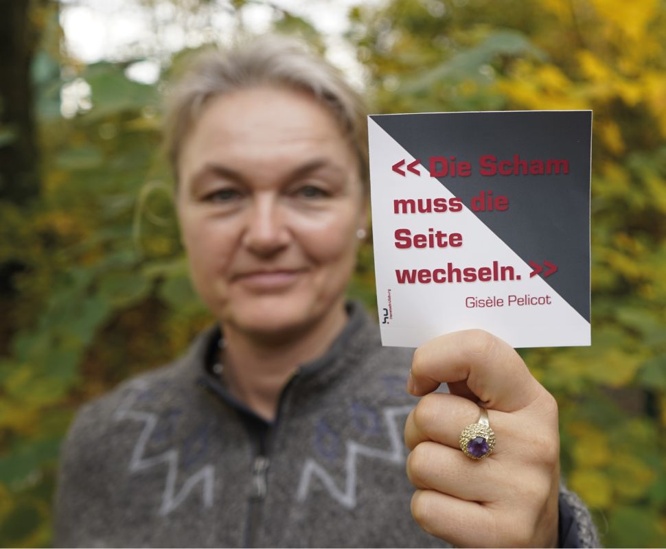 „Aus Scham zeigen viele Frauen häusliche Gewalt und sexuellen Missbrauch nicht an. Der Prozess um die Massenvergewaltigungen von Gisèle Pelicot aus Frankreich erschütterte 2024 international und durch ihren mutigen Satz ‘Die Scham muss die Seite wechseln‘ ist Gisèle Pelicot zur Symbolfigur im Kampf gegen sexualisierte Gewalt geworden. Um aus der Opferrolle herauszutreten und den Tätern die Scham zuzuweisen, setzte sie bei Gericht in Avignon durch, dass der Prozess nicht unter Ausschluss der Öffentlichkeit stattfand und auch die Videoaufnahmen der Taten im Beweisverfahren gezeigt wurden. Ihr geschiedener Mann und 50 weitere Täter hatten sie systematisch und auf Einladung ihres Mannes schwer vergewaltigt, nachdem sie von ihm jeweils betäubt worden war“,
