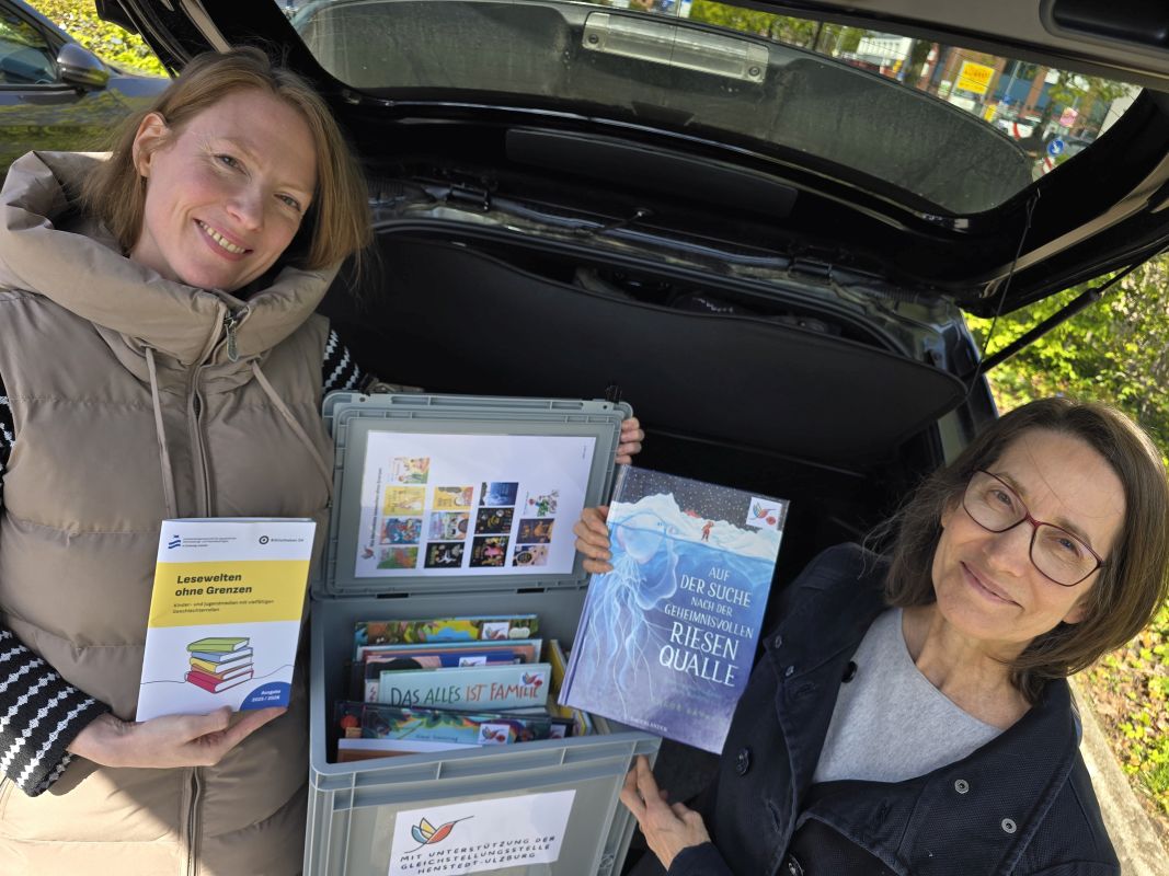 Im Rahmen der rotierenden Bücherkisten der Gemeindebücherei für die Kindertagesstätten ist deswegen die Bücherkiste „Lesewelten ohne Grenzen“ mit allen Büchern der Broschüre der Altersstufe bis sechs Jahren, ergänzt durch Fachliteratur für die Fachkräfte, aus Gleichstellungsmitteln zusammengestellt worden. Diese sowie 14 weitere Bücherkisten mit je 25 altersgerechten und bunt gemischten Büchern werden seit 2020 an die derzeit zwölf teilnehmenden Kindertagesstätten der freien Träger und des Eigenbetriebs geliefert und rotieren einmal pro Quartal. Start für den neuen Durchlauf ist der 5. Mai.